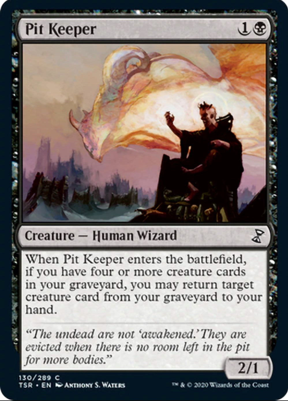 When Pit Keeper enters the battlefield, if you have four or more creature cards in your graveyard, you may return target creature card from your graveyard to your hand.
