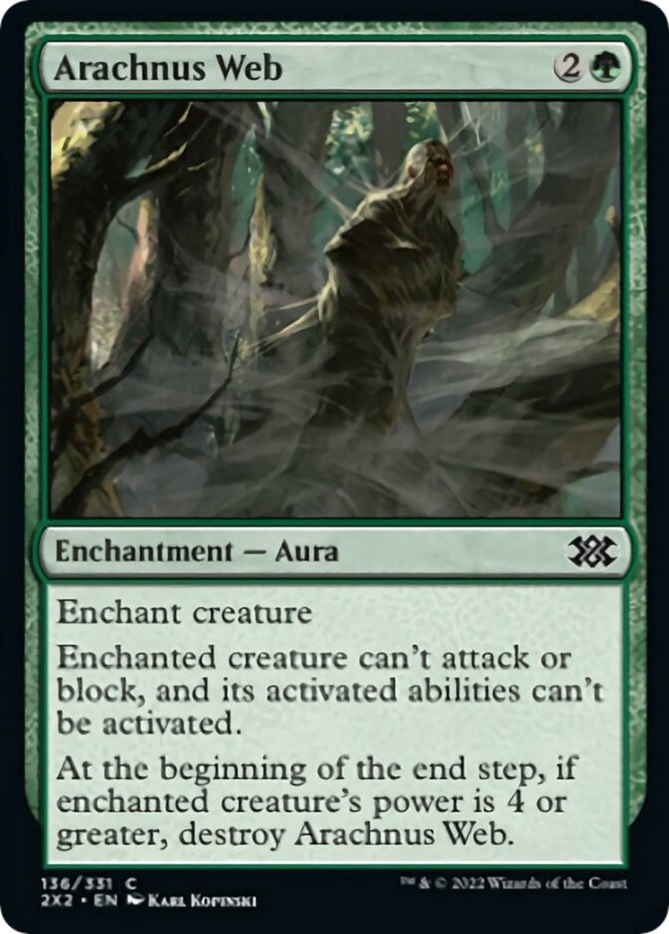At the beginning of the end step, if enchanted creature's power is 4 or greater, destroy Arachnus Web.