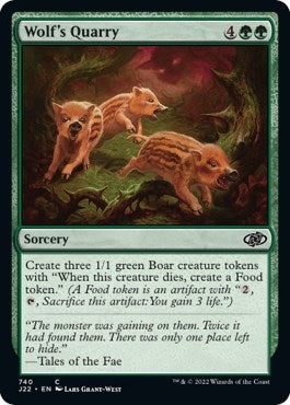 Create three 1/1 green Boar creature tokens with "When this creature dies, create a Food token." (A Food token is an artifact with "{2}, {T}, Sacrifice this artifact: You gain 3 life.")