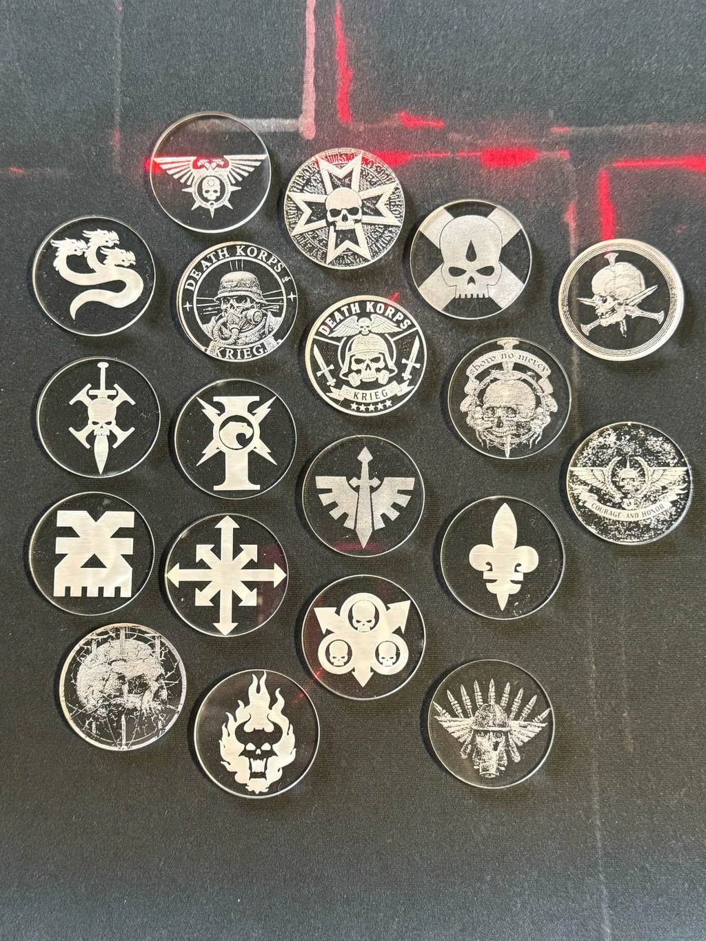 Upgrade your tabletop game with these sleek, clear acrylic objective tokens! Each token measures 40mm in diameter and is laser-cut for precision and durability. The transparent design keeps your board clean and readable while clearly marking objectives. Want something personalized? We happily accept custom requests—just send us a message to get started!