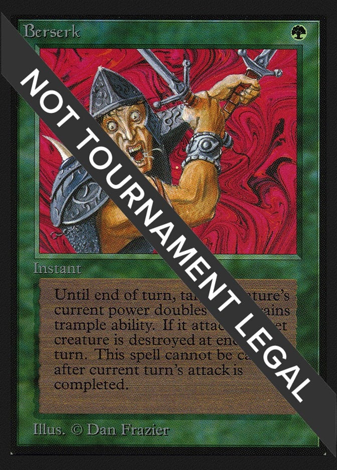 Until end of turn, target creature’s current power doubles and it gains trample ability. If it attacks, target creature is destroyed at end of turn. This spell cannot be cast after current turn’s attack is completed.