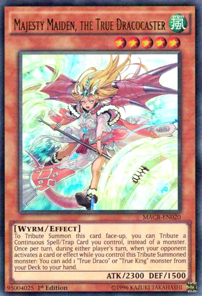 - Description: To Tribute Summon this card face-up, you can Tribute a Continuous Spell/Trap Card you control, instead of a monster. Once per turn, during either player's turn, when your opponent activates a card or effect while you control this Tribute Summoned monster: You can add 1 "True Draco" or "True King" monster from your Deck to your hand.