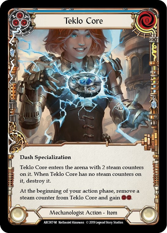 Teklo Core enters the arena with 2 steam counters on it. When Teklo Core has no steam counters on it, destroy it.